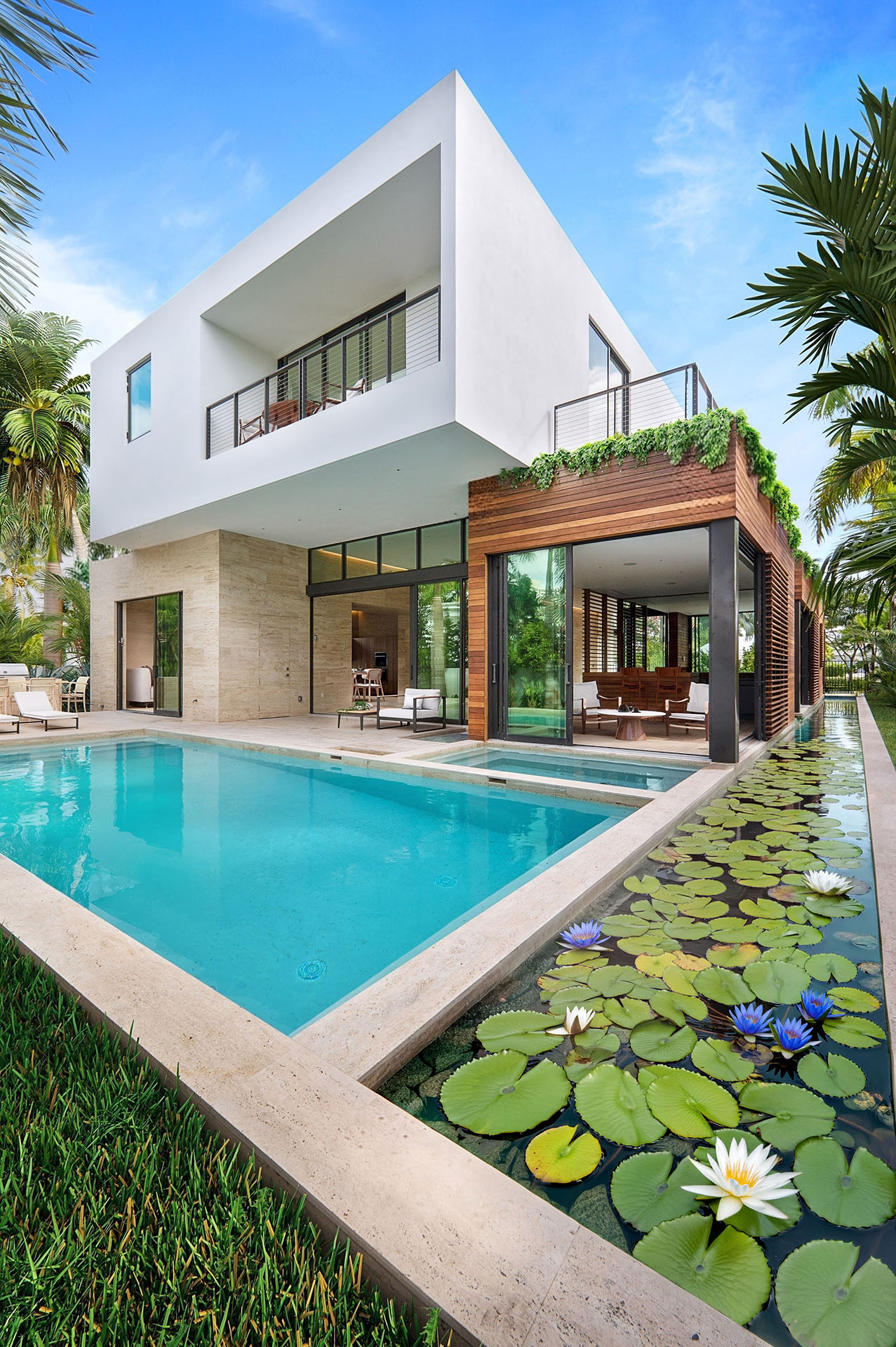 The concept for Bora Bora emerged from the convergence of ambition and inspiration. The client – a savvy, luxury spec developer- set an audacious goal: to command a waterfront price for a landlocked property. We posited- if we can’t bring the property to the water, let’s bring the water to the property. Meanwhile, swirling in my mind while I was brainstorming the design approach was my company’s slogan, “Designing Your Dreams,” as well as the South Florida adage, “We live where you vacation.” With this in mind, I asked my girlfriend of her dream honeymoon vacation destination. She responded, “Bora Bora.” -And I said, “Yes, that’s it!”